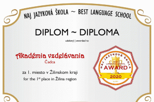 V roku 2020 sme boli už 3. krát nominovaný na NAJ jazykovú školy Žilinského kraja. Tento rok sme skončili na prvom mieste ako NAJ jazyková škola Žilinského kraja. V roku 2019 sme získali 2. miesto a v roku 2018 to bolo 3. miesto.